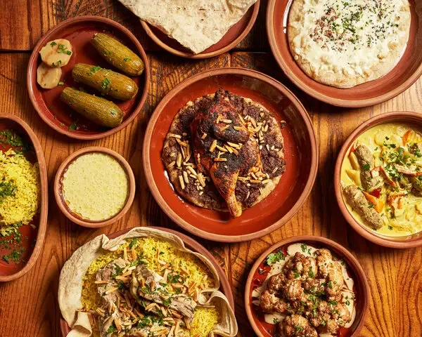 • 3–4 Sides (e.g., Rice, Hummus, Mutabaal, Stuffed Grape Leaves)